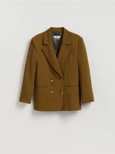 Reserved - Dwurzędowa marynarka z wiskozą - warm olive