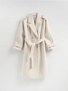 Reserved - Dwurzędowy płaszcz z paskiem - kremowy