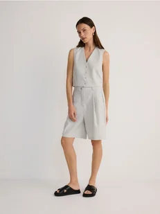 Kamiezelka o dopasowanym kroju, wykonana z gładkiej tkaniny z dodatkiem lnu i wiskozy.