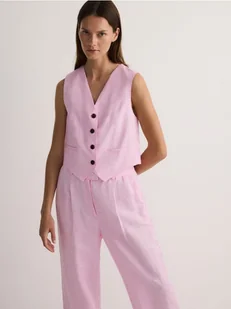 Reserved - Garniturowa kamizelka z lnem - pastelowy róż