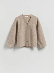 Marynarka o prostym kroju, wykonana z dzianiny.