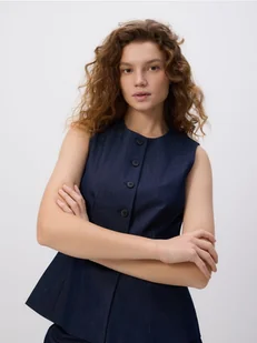 Kamizelka o dopasowanym kroju, wykonana z tkaniny z dodatkiem wiskozy.