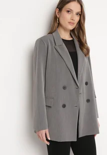 Szara Marynarka Dwurzędowa z Poduszkami w Ramionach Shalisse