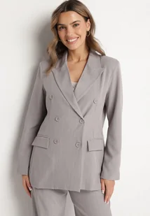 Szara Marynarka Dwurzędowa z Wiskozą i Usztywnianymi Ramionami Elliovae