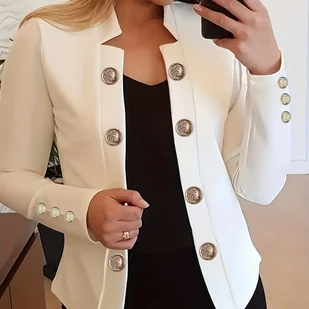 TEMU Elegancka Marynarka Damska z Długim Rękawem Damska Kurtka Złote Guziki Podszewka Kompozytowa Tkanina Jesień, Biuro Wyjście