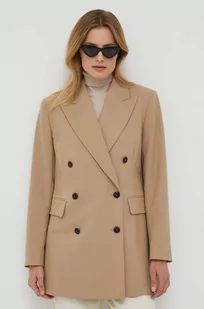 Tommy Hilfiger marynarka z domieszką wełny kolor beżowy dwurzędowa gładka