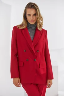 Kolor: intensywna barwa czerwieni ożywi zwykły strój do pracy. Materiał: żakiet ze szlachetnej wełny posłuży dłużej, niż zwykłe ubranie.