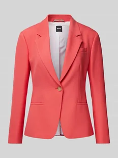 Żakiet damski BOSS;Mieszanka wiskozy ze streczem;Taliowany krój;Model ‘Jia’;Kołnierz z połami;Brustasza;Zapięcie na guzik;Długość tyłu w rozmiarze 36: 63 cm;Szerokość klatki piersiowej w rozmiarze 36: 38 cm;Długość rękawa w rozmiarze 36: 60 cm