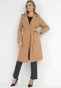 Beżowy Płaszcz Jednorzędowy z Paskiem Oronice