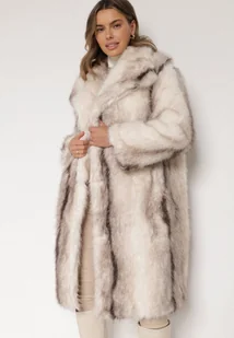 Biały Płaszcz Futro z Szerokim Kołnierzem i Kieszeniami Ezinda