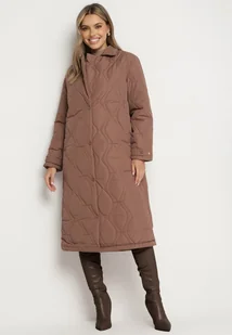 Brązowy Długi Płaszcz Kurtka z Kołnierzem i Pikowaniem Semere