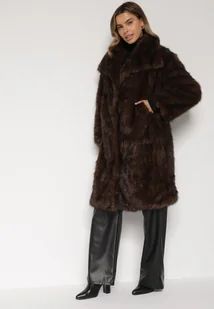 Brązowy Jednorzędowy Płaszcz Futro z Szerokim Kołnierzem Wedinalia