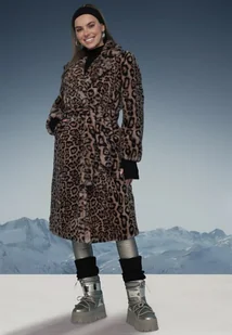 Brązowy Płaszcz w Panterkę Futerko Ozdobiony Paskiem Delmarea