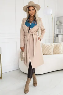 Polski ciepły płaszcz marki Numoco to doskonała propozycja na chłodne dni. Uszyty z grubego, beżowego materiału na podszewce, zapewnia ciepło i wygodę. Model posiada długie rękawy, stylowe wiązanie w pasie oraz ...