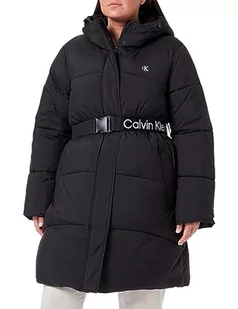 Calvin Klein Jeans Damskie płaszcze z logo Plus z długim puchowym wyściełanym paskiem, Czarny, XXL