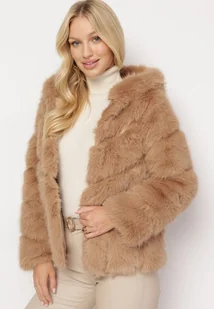 Ciemnobeżowa Futrzana Kurtka z Kapturem Daviella