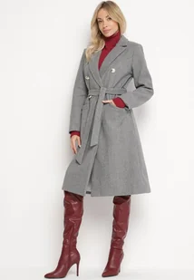 Ciemnoszary Płaszcz Dwurzędowy z Paskiem Caeyle