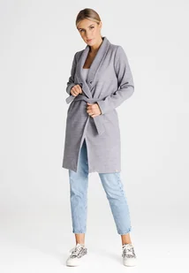 Codzienny PŁASZCZ damski z wiązaniem w pasie Szary roz. L