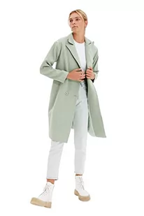 Damski kołnierz z klapą z długim rękawem zapinany na guziki klasyczny płaszcz - dwurzędowy, Miętowy, 64
