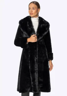 Długi płaszcz – klasyka i przytulne ciepło Ten długi płaszcz łączy ponadczasowy styl z komfortem i funkcjonalnością na chłodne dni. Wykonany w całości z miękkiego, sztucznego futra, przyjemnie otula sylwetkę, zapewniając wygodę i lekkość noszenia. Futrzany kołnierz dodaje charakteru i elegancji, pięknie okalając twarz i nadając całości luksusowego wyglądu. Dwie kieszenie pozwalają ogrzać dłonie lub wygodnie schować drobiazgi, nie zaburzając harmonii fasonu. Dla kogo? Ten płaszcz jest idealny dla kobiet, które cenią klasyczną elegancję w połączeniu z wygodą.