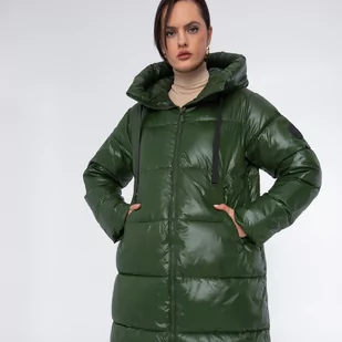 Damski płaszcz pikowany. Długi, pikowany płaszcz to must have na chłodniejsze miesiące. Ma modny oversizowy fason i zapina się na podwójne suwaki. Wygodny duży kaptur ściągany troczkami ochroni Twoją głowę przed zimnem. Ten model został wykonany z delikatnie połyskującego materiału, który nadaje wyjątkowy charakter całości.
