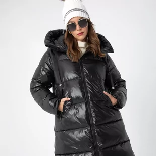 Damski płaszcz pikowany. Długi, pikowany płaszcz to must have na chłodniejsze miesiące. Ma modny oversizowy fason i zapina się na podwójne suwaki. Wygodny duży kaptur ściągany troczkami ochroni Twoją głowę przed zimnem. Ten model został wykonany z delikatnie połyskującego materiału, który nadaje wyjątkowy charakter całości.