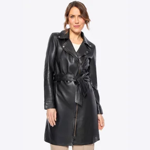 Damski płaszcz ze skóry naturalnej – elegancja w najlepszym wydaniu Wzbogać swoją garderobę o element, który łączy ponadczasowy design z nowoczesnym charakterem. Płaszcz z naturalnej skóry owczej to synonim elegancji, a metalowe detale oraz subtelne logo producenta nadają mu wyjątkowego wyrazu. Zapinany na zamek błyskawiczny, z rewersowym kołnierzem, długimi rękawami i paskiem w talii, stanowi kwintesencję luksusu i dobrego stylu. Każdy Twój krok w nim będzie emanował pewnością siebie i wyrafinowanym smakiem. Dla kogo? Jeśli szukasz płaszcza, który doda Ci klasy, podkreśli Twój wyjątkowy gust i sprawi, że wyróżnisz się z tłumu – ten model został stworzony właśnie dla Ciebie! Nasza rada: