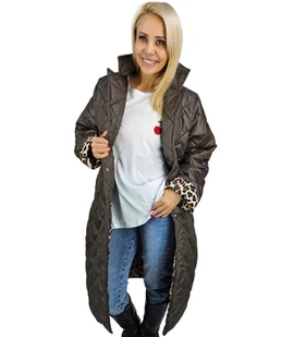 Długi damski płaszcz przejściowy pikowany ciepły panterka BIANCA