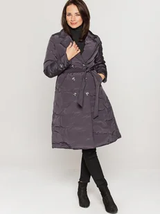 Dwurzędowy płaszcz damski puchowy pikowany z kołnierzem Występuje w dwóch wariantach kolorystycznych: szarym oraz czarnym.