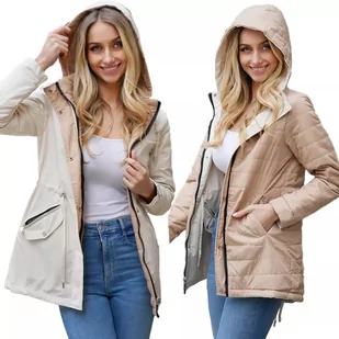 Dwustronny Taliowany Wiosenny Płaszcz Parka Kaptur 3 Kolory Przejściowy