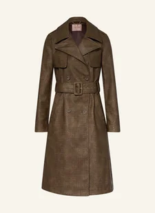 Prosty krój. Klapy. Zapinane na guziki patki na ramionach. Karczek na plecach. Karczek na ramionach. Dwurzędowe zapięcie na cztery guziki.