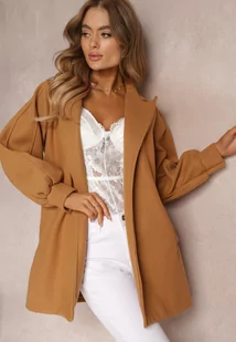 Jasnobrązowy Płaszcz z Wiązanym Paskiem i Bufiastym Rękawem Agnage