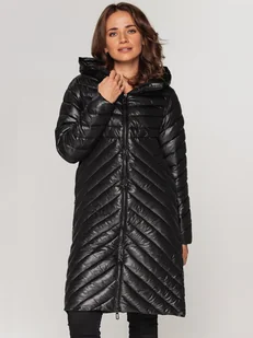 Klasycznie pikowany płaszcz damski z kapturem M Czarny