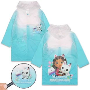 Koci Domek Gabi Niebiesko-biały, dziewczęcy płaszcz przeciwdeszczowy z kapturem, pelerynka dla dziewczynki 8-9 lat 128-134 cm