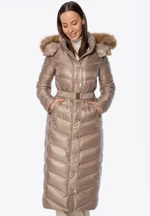 Damski płaszcz puchowy z paskiem – elegancja i ciepło w zimowej odsłonie Ten puchowy płaszcz łączy styl i komfort w chłodne dni. Wypełnienie z naturalnego puchu kaczego i pierza zapewnia doskonałą izolację, a dłuższy, dopasowany fason slim pięknie otula sylwetkę, podkreślając jej linię i zapewniając jednocześnie swobodę ruchów. Materiał zewnętrzny wykonany z wytrzymałego nylonu chroni przed wiatrem i wilgocią. Płaszcz posiada praktyczne detale – solidny zamek i zatrzaski, dwie kieszenie zapinane na zamek, pasek w talii podkreślający kobiecą sylwetkę oraz kaptur ze sztucznym futerkiem, który można łatwo odpiąć. Dla kogo? Jeśli cenisz zimowe okrycia łączące komfort, kobiecy krój i ponadczasową elegancję, ten damski płaszcz jest stworzony dla Ciebie.