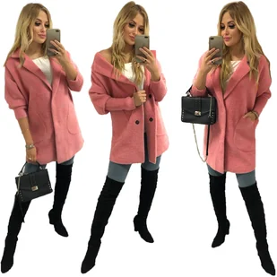 Płaszcz ALPAKI kurtka WEŁNA MOCNY RÓŻ oversize