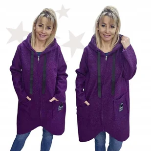 płaszcz damski wiosenny przejściowy bukla fiolet kaptur modny 46 48 3XL 4XL