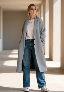 Płaszcz prążkowany - Płaszcz zimowy damski - Szary płaszcz M1111 r. UNI