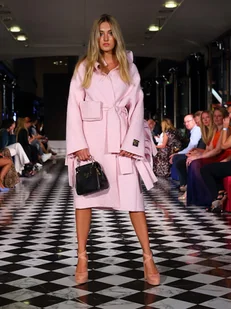 OVERSIZE BY EWA ZBARASAZEWSKA Damski płaszcz wełniany z naturalnej wełny parzonej w kolorze pudrowego różu. Projekt jest ozdobiony jest frędzlami o szerokości 4cm i mini torebką na pasku. Jest niezwyk ...