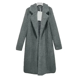 Pluszowy długi płaszcz damski - Szary