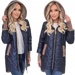 Przejściowy Pikowany Płaszcz Na Wiosnę Wiosenny Damski Z Kapturem Lekki 3XL