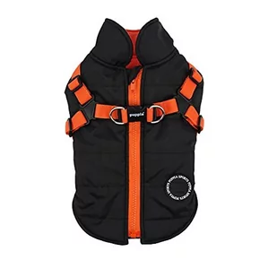 Puppia Wysokiej jakości płaszcz dla małych psów i średnich psów – wodoszczelny i podszyty polarem dla przyjemnego ciepła – płaszcz dla psa z uprzężą, czarno-pomarańczowy, S, PAPD-VT1366-BO-S