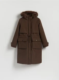 Kurtka o prostym kroju, wykonana z tkaniny o podstawowej wodoodporności.