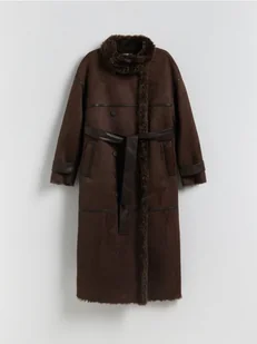Reserved - Dwurzędowy płaszcz z kożuchem - ciemnobrązowy