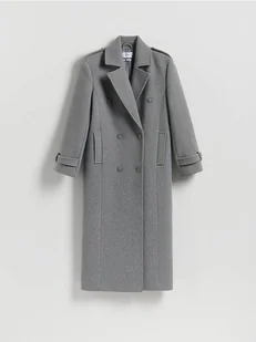 Reserved - Dwurzędowy płaszcz z wełną - szary