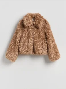 Kurtka o prostym fasonie, wykonana z imitacji futra.