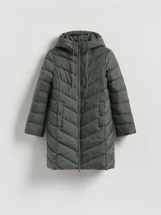 Płaszcz o dłuższym kroju, wykonany z gładkiej, pikowanej tkaniny.