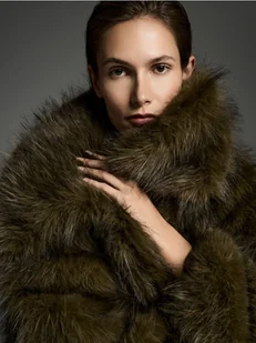 Kurtka o prostym kroju, wykonana ze sztucznego futerka.