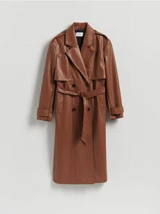 Reserved - Trencz z imitacji skóry - brązowy