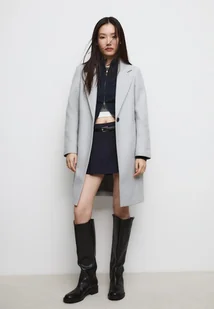 Stradivarius Miękki płaszcz średniej długości na guziki Popielaty XS